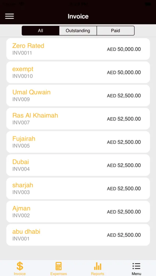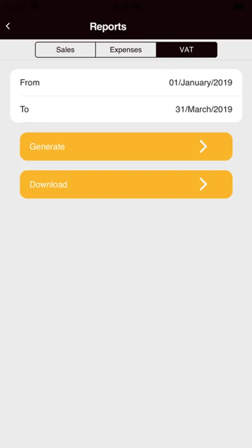 Once you are done with recording your sales invoices and expenses generate the VAT report with one click for a selected period.