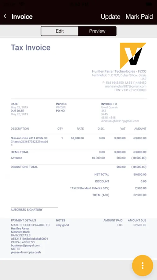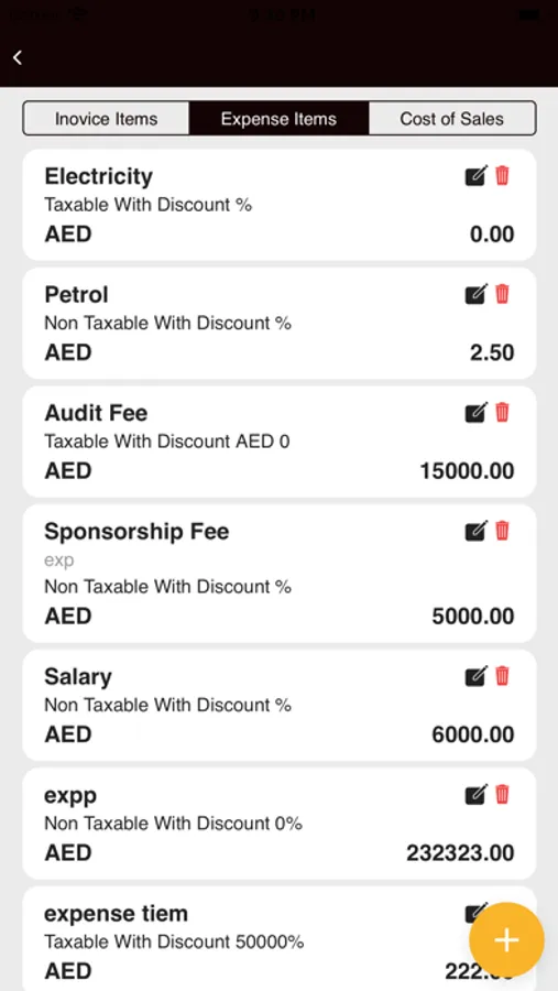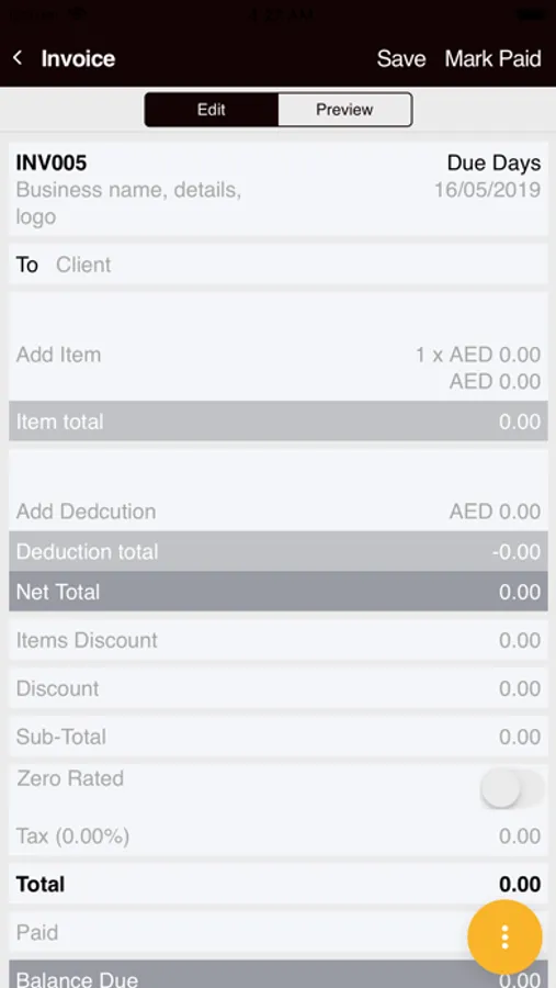 You can add items with taxable and not taxable options with discount in percentage or amount.