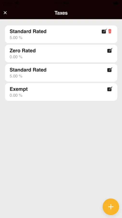 Use a standard set of taxes available for adding taxes to your invoices. Use Standard rates, Zero Rated or Exempt tax rates.
