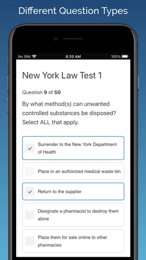 Our New York MPJE® Test Prep app includes 350 pharmacy law practice questions: