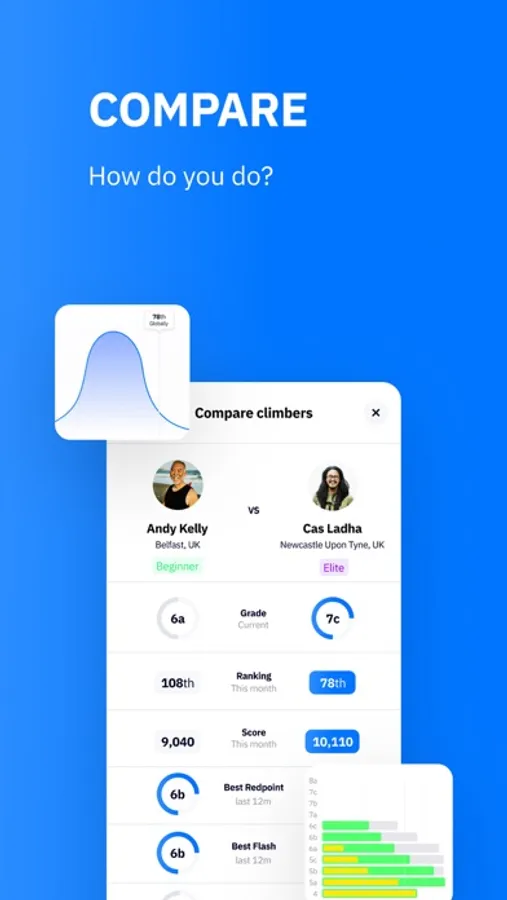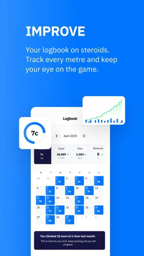 Everyone loves to get better, and seeing gains is a crucial part of staying motivated. In climbing, it's often hard to pin these down and so progression tends to plateau. The app helps you drill into the areas you can improve at your own pace.