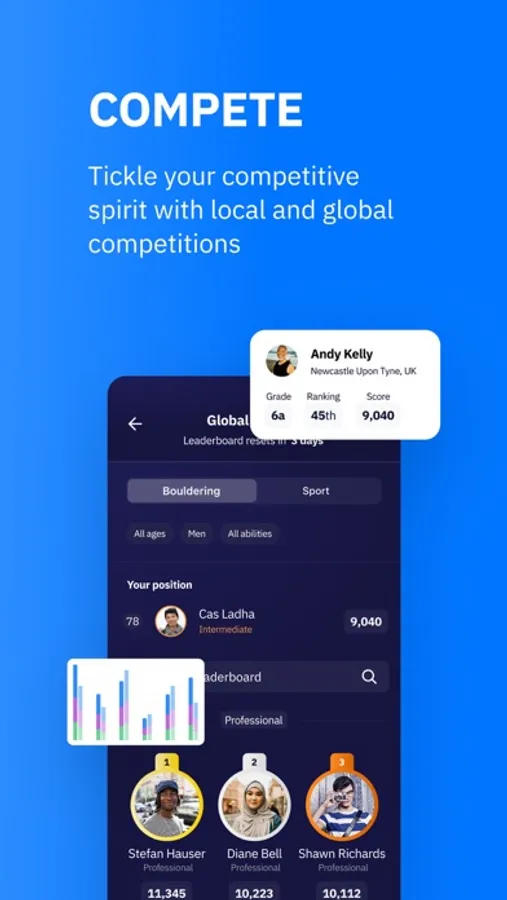 Got a competitive or curious side. Or, just want to smash your own PB? The app has both global and venue linked rankings that are fully filterable to help you in your quest.