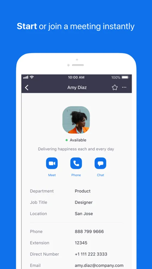 Zoom is your communications hub for meetings, webinars, chat and cloud phone. Your users can start or join meetings with flawless video, crystal clear audio and instant screen sharing from desktop, mobile or conference rooms.