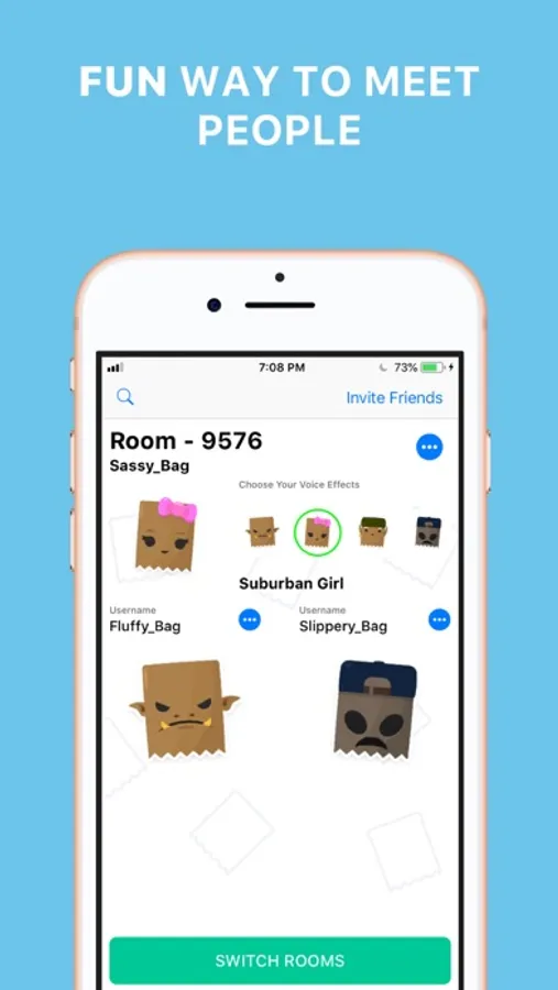 Just open up the app and start meeting people and making friends. Bag Chat!