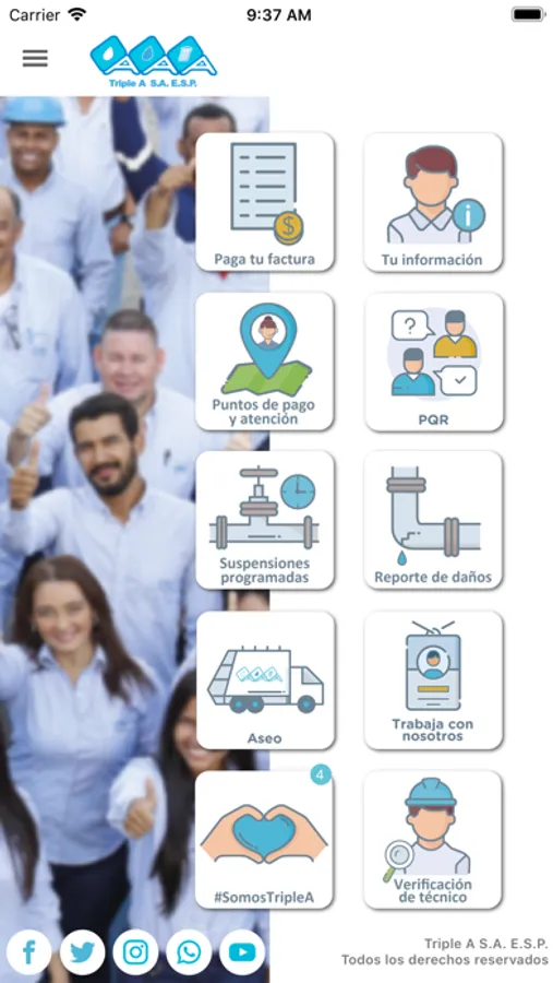 Con la nueva app AAA, podrá reportar daños, consultar mantenimientos programados, actualizar datos, buscar centros de atención y pagos más cercanos, y mucho más. Todo, directamente desde tu celular.