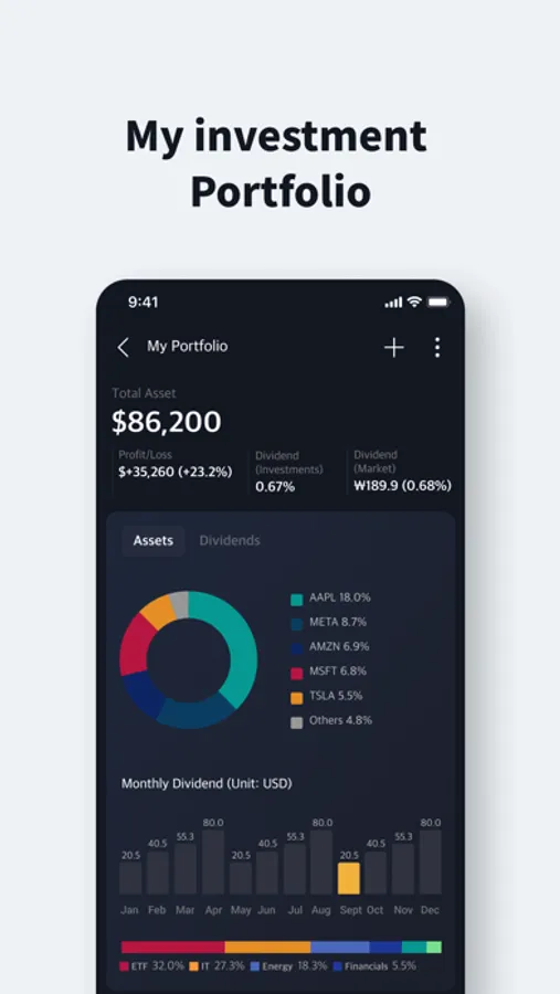 The Rich provides up-to-date information on visualized portfolios and dividend stocks. Experience more effective portfolio management by linking your assets to securities firms! Currently, it supports the linkage of more than 20 securities firms, including Kiwoom, Samsung, Mirae Asset, Korea Investment & Securities, Namu, KB and Robin Hood, Charles schwab, Fidelity Securities. Are you using a securities firm unsupported or overseas? Don’t you worry! You can enter it directly into manual portfolio!