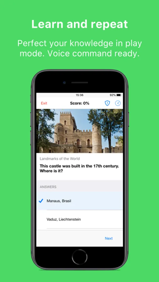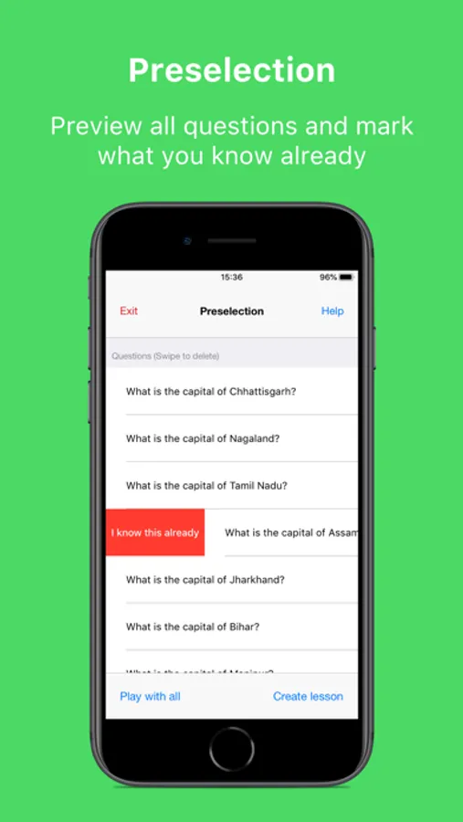 Go through the question via voice command. The app reads the questions and you can answer only via voice: In the car, on the bike, while doing chores around the house etc.