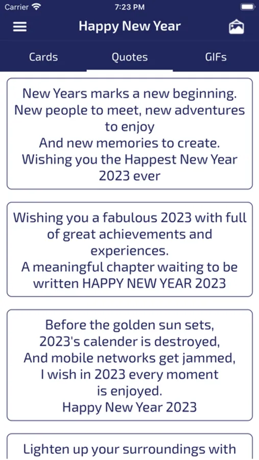 This app is the perfect app for wish someone on new year 2023. This app have amazing collection of greetings and wishes for new year. Using this app you can send or share greetings or wishes to your loved ones.