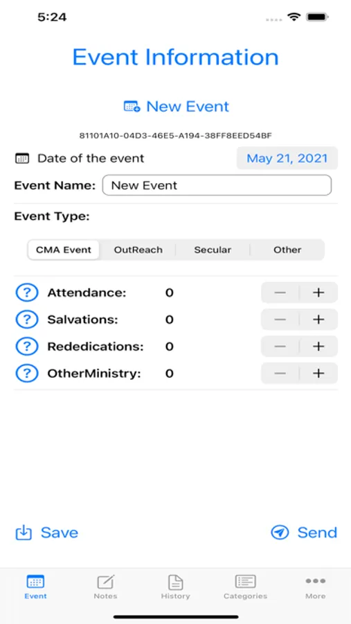 After the initial setup enter the name of the event, type of event, date of the event and your ministry numbers for the event. When you are finished, tap Create Email and send the email. Your chapter secretary receives an email with your activity report for the event. It's that easy.
