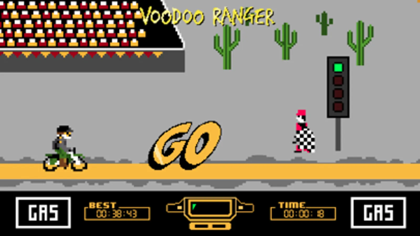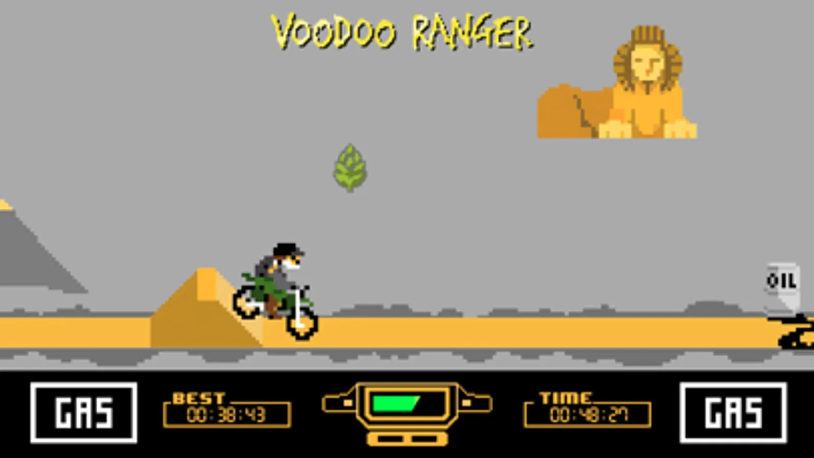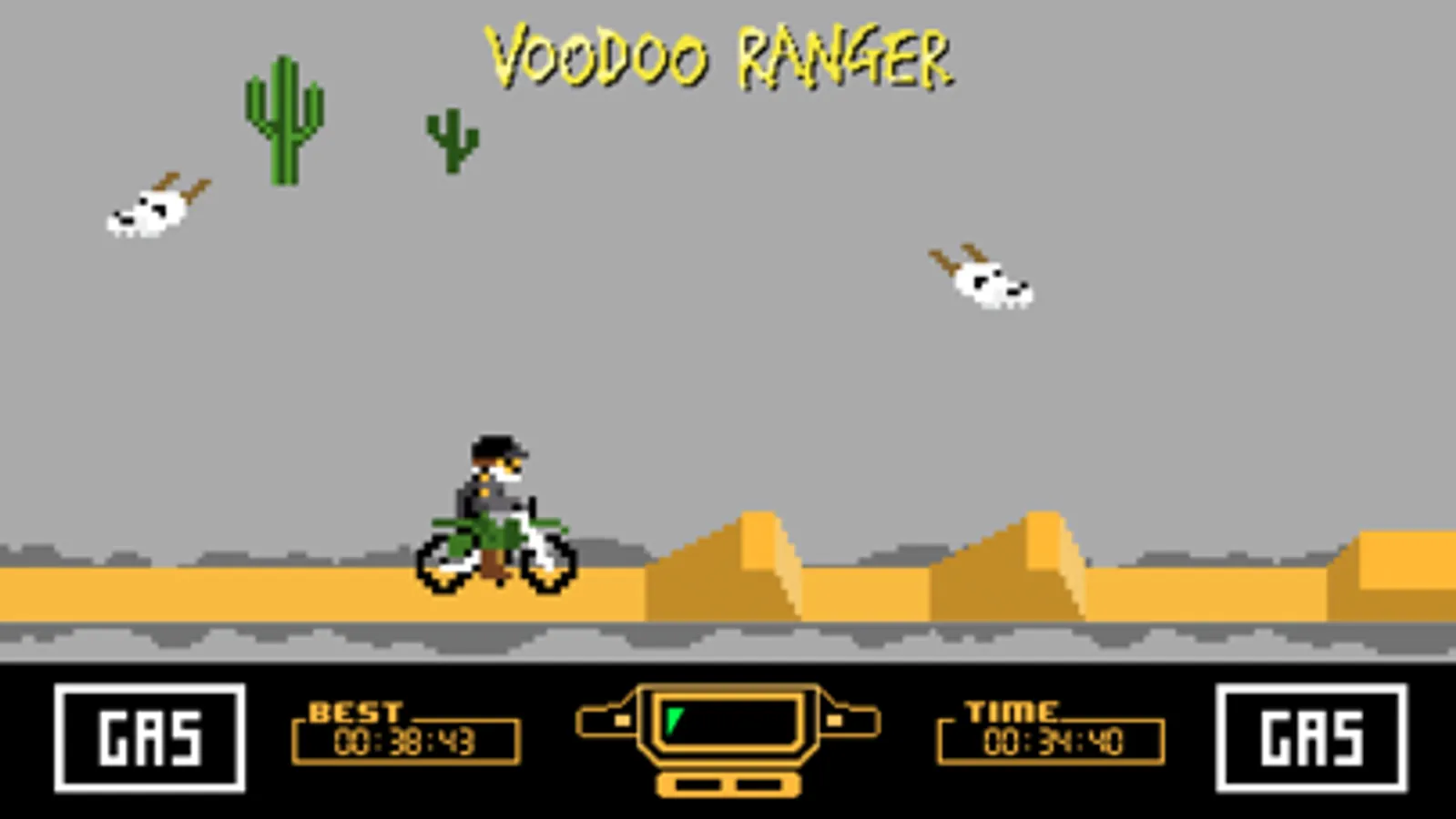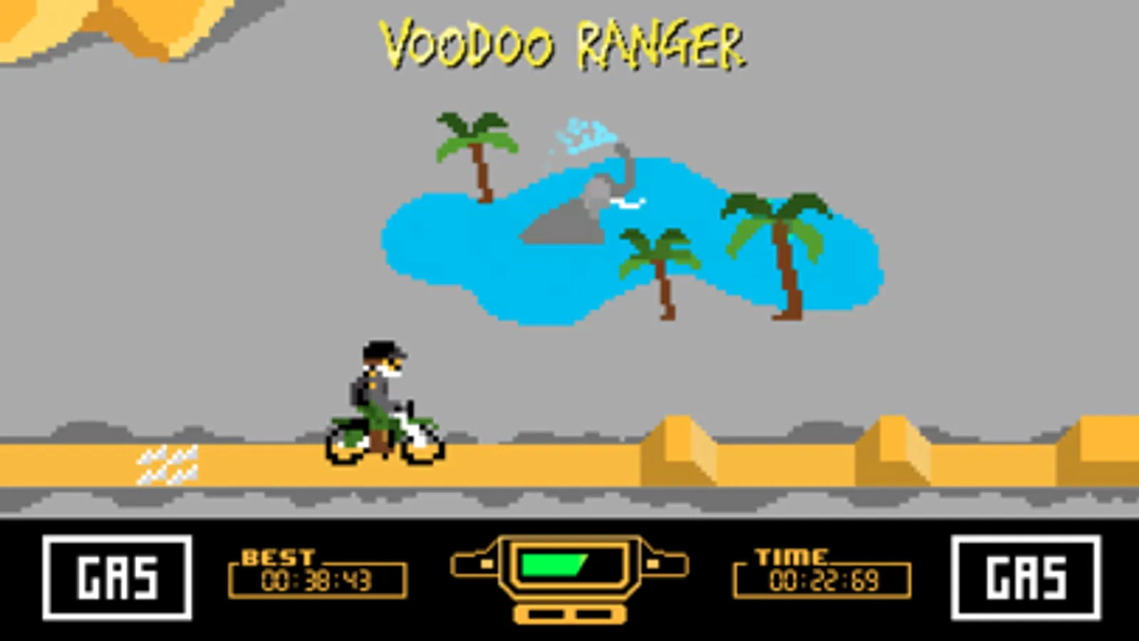 Hit the trails with Voodoo Ranger on a dirt bike time-trial adventure. Perfect timing is essential while you jump moguls and berms and maintain a top speed. Try to catch the hops for bonus seconds, but avoid the obstacles that slow you down!
