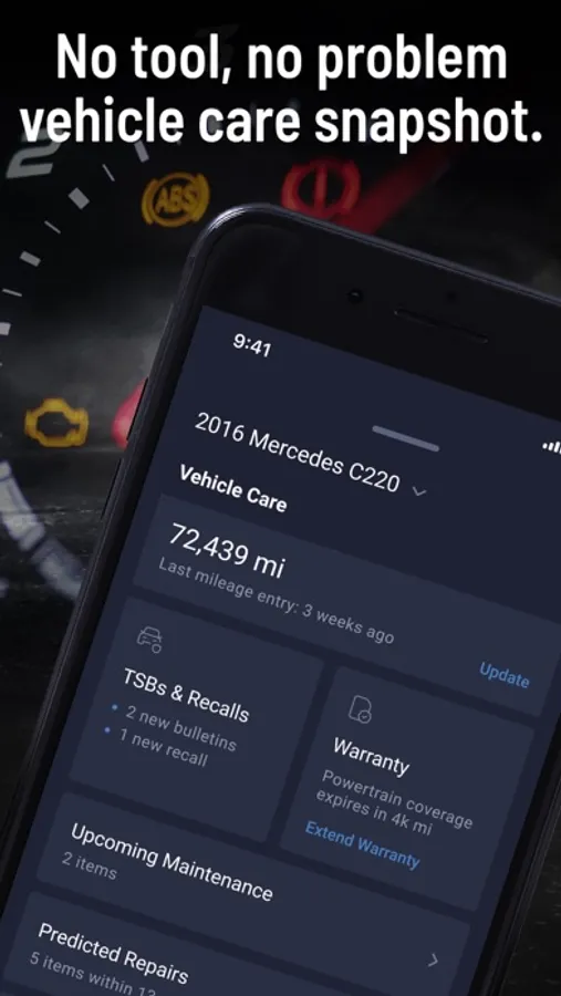 - No Tool Needed – View vehicle maintenance, predicted repairs, TSB/Recalls, Cost to Own, and Code Definitions! All available even if you do not own a compatible tool.