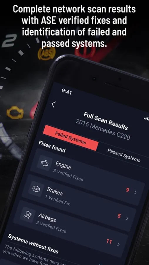 - Complete Vehicle Scan - Perform quick scans (engine only), specific modules, and complete network scan.