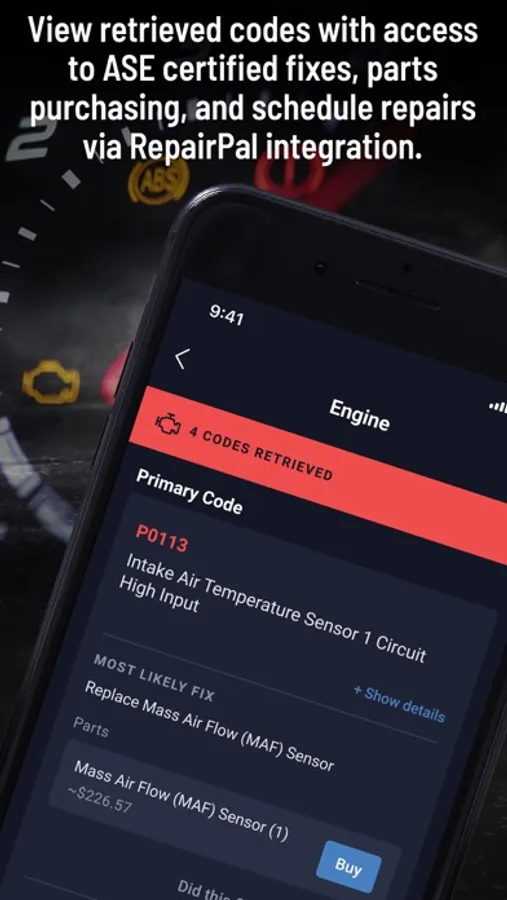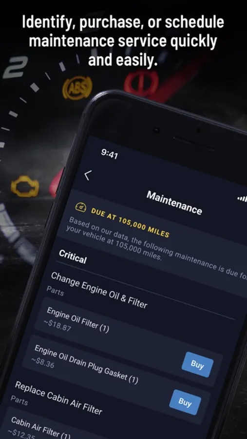 Identify and purchase the right parts (maintenance and repairs) for your specific vehicle instantly from your favorite online retailer. This in-app feature makes it easier and faster to find the right quality parts to get the job done.