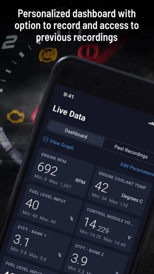 - LIVE DATA - Access a customizable LIVE data feed with the ability to choose specific data inputs, create line graphs, record and access previous LIVE data recording sessions.