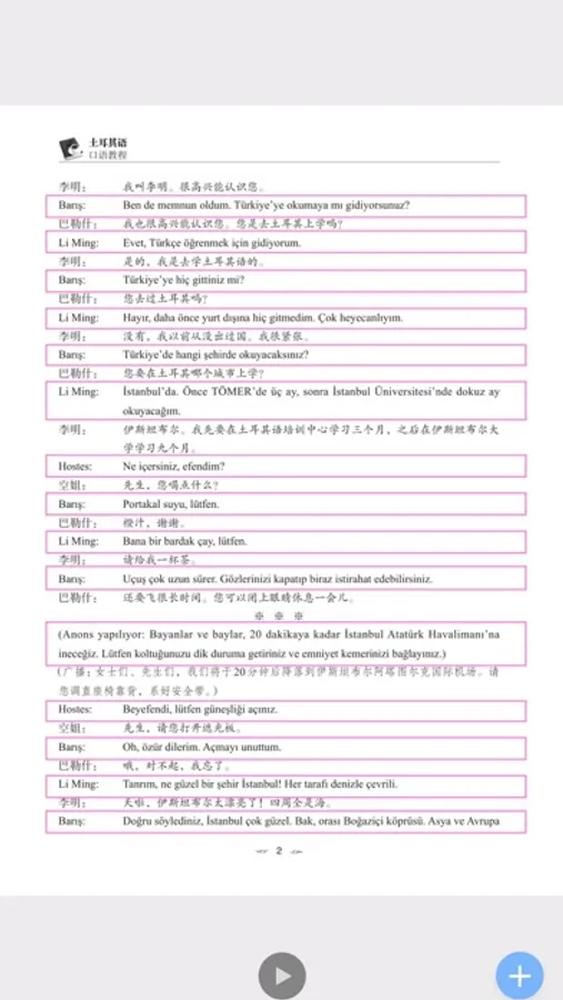 注释、生词、补充词汇、常用句型、知识角以及练习等七个部分,可作为大学本科土耳