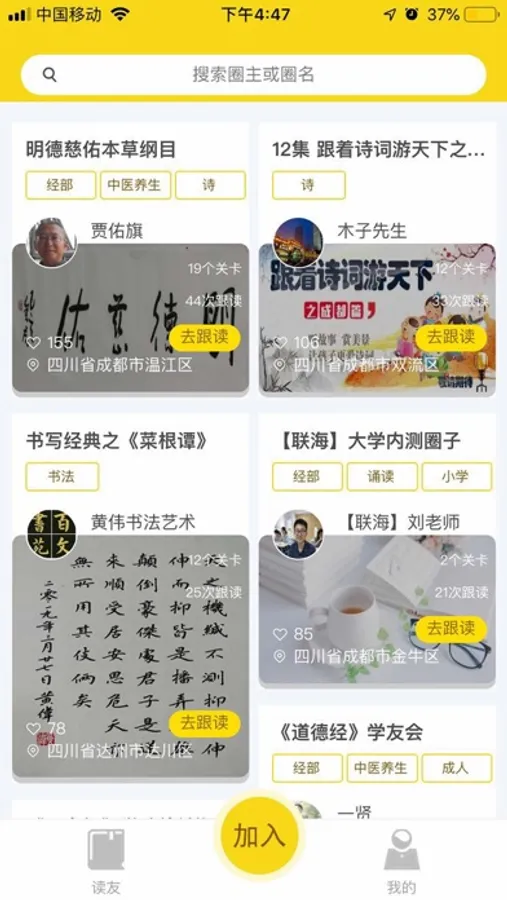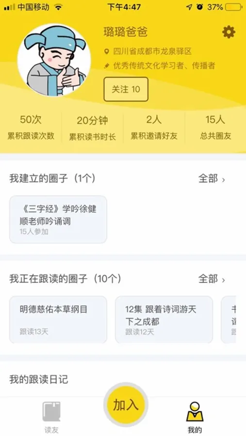 联海诵读是国学经典诵读为主的读书工具软件,通过个人或者机构建圈,邀请身边用户参与跟读、还具有打卡、评分、教学以及国学相关活动发布等功能,通过国学经典诵读构建起来的少儿童蒙国学教育精准化定制化教育平台。