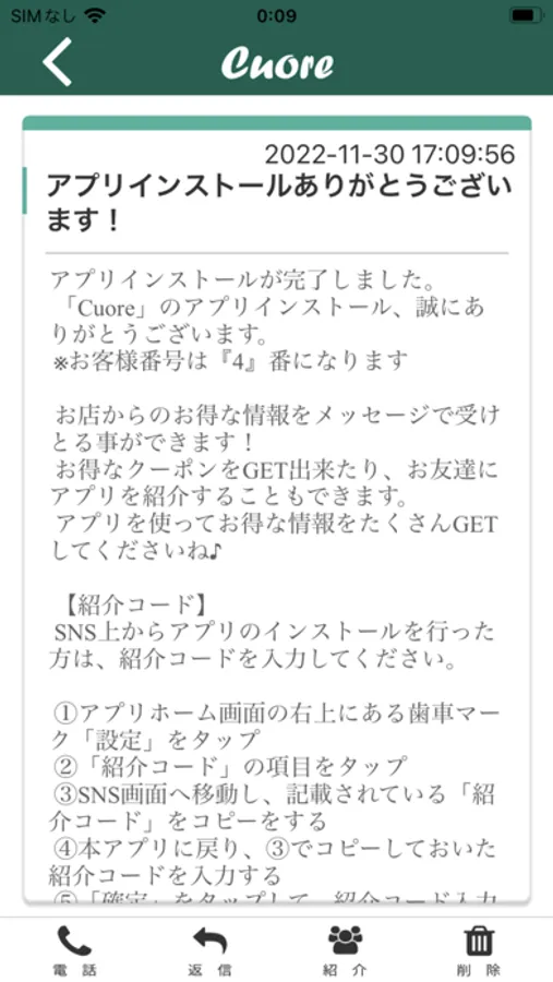 CuoreのアプリをSNSを通じてお友達に紹介する事ができます。