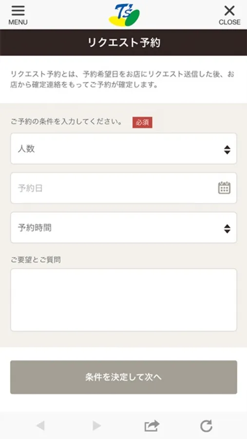 定休日や営業時間外でも予約のリクエストが出来ます。