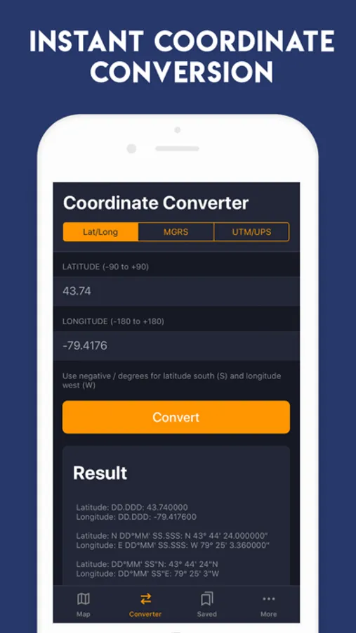 Easily and quickly convert coordinates from/to:
