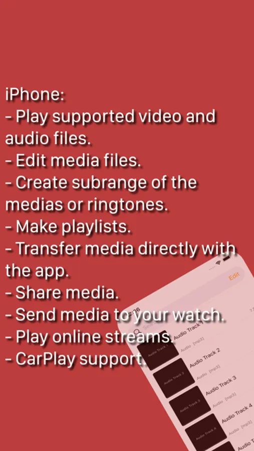 Add mp3, mp4, m4a, m4p, m4v, wav, aiff, mov files to the shared folder in iTunes.