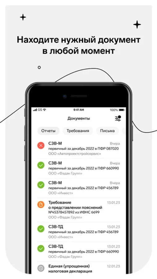 Контролируйте отчетность в приложении Контур.Экстерн — следить за статусами отчетов и поступлении требований можно с телефона. Вы не пропустите важное, даже если у вас несколько организаций на обслуживании.