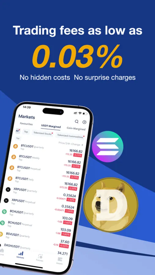 In addition to the major digital currencies like BTC, ETH, BCH, LINK, LTC, ADA, DOT, EOS, XRP, and UNI, you can also trade DASH, DOGE, FIL, XLM, SOL, MANA and AVAX on our platform. We offer flexible leverage up to 150x across various contract types, allowing you to adjust your positions to meet your trading needs and goals.