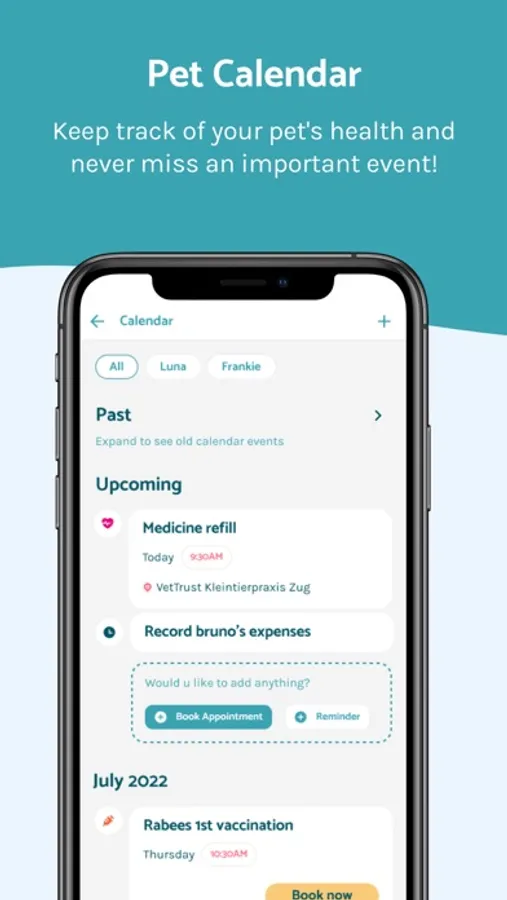 Stay on top of vaccinations, deworming, and medications with automatic reminders in the app.