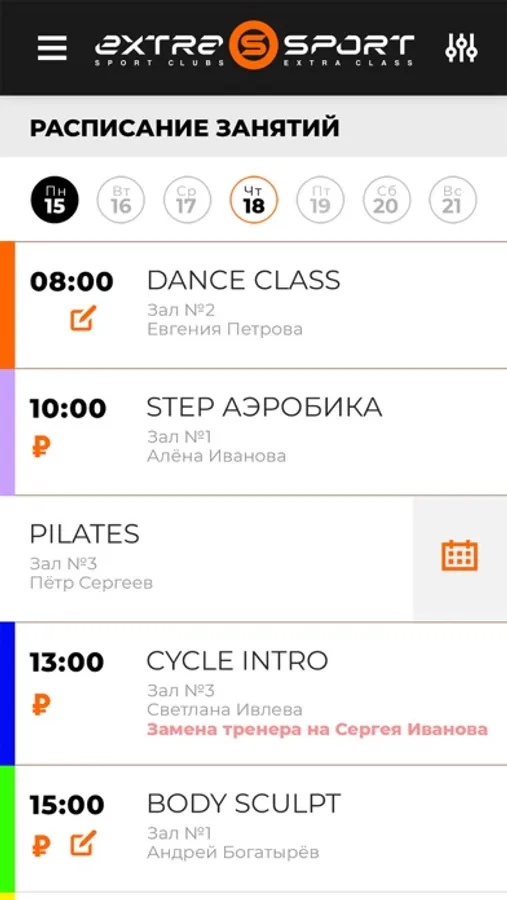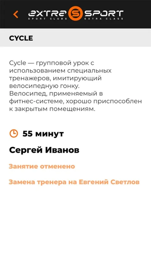- доступ к актуальному расписанию групповых программ, описанию и продолжительности занятий;