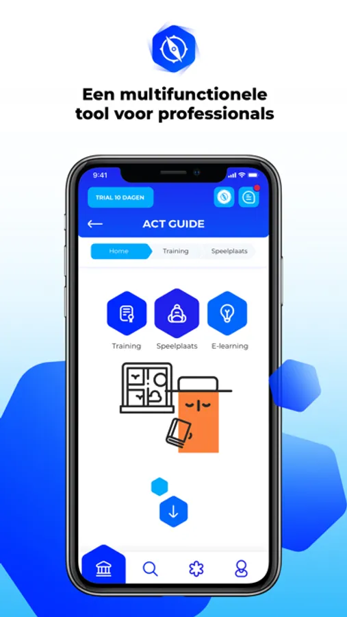 De app is opgebouwd uit drie onderdelen: Trainingen, de Speelplaats, en een Educatie gedeelte.
