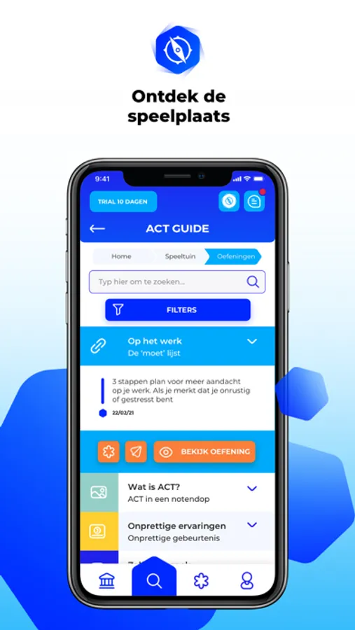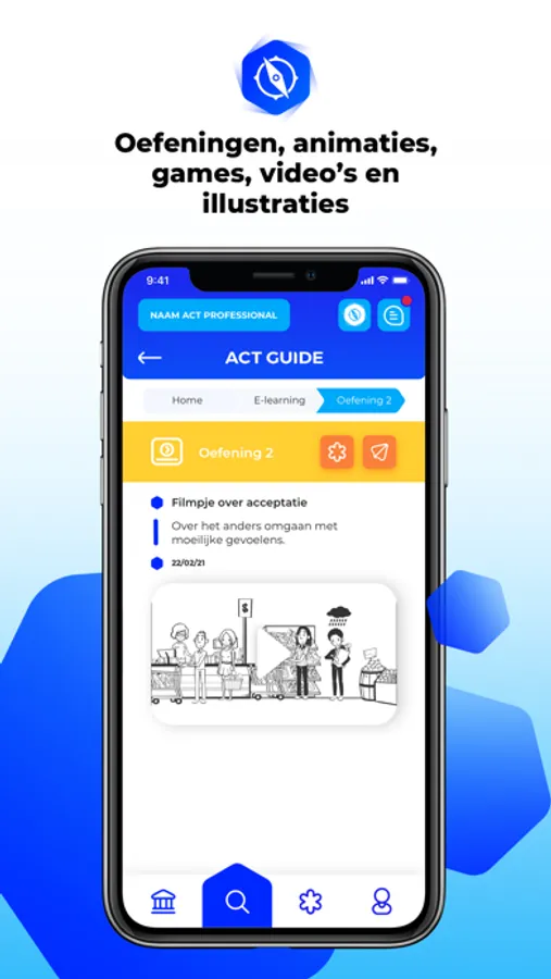 De ACT Guide App is een multifunctionele tool voor professionals die werken op basis van technieken uit de Positieve Psychologie. Je krijgt met deze app een schat aan oefeningen, animaties, games, video´s en illustraties in handen. Je kunt oefeningen en zelfs hele sessies doorsturen naar al je cliënten, die, zolang ze bij jou een programma volgen, allemaal gratis gebruik kunnen maken van de app.