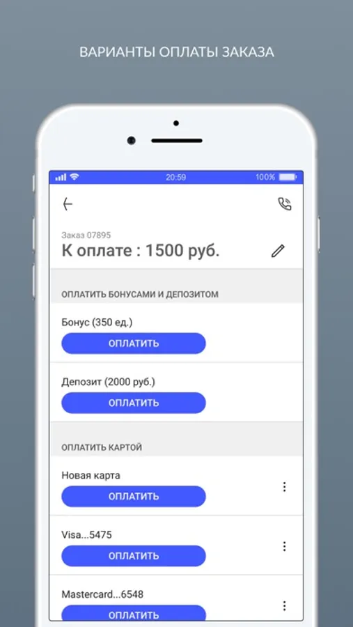 - оплатить заказы банковской картой, бонусами или депозитом;