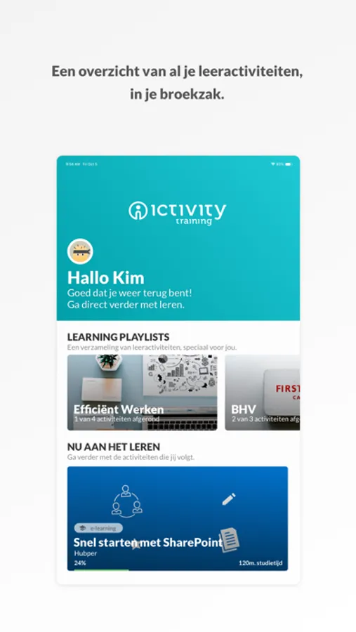 Met de Ictivity KennisHub app heb je altijd en overal toegang tot je online leeractiviteiten. Bekijk al je activiteiten, zoek in de bibliotheek, ga aan de slag met je e-learnings of train je kennis met Brainpower!