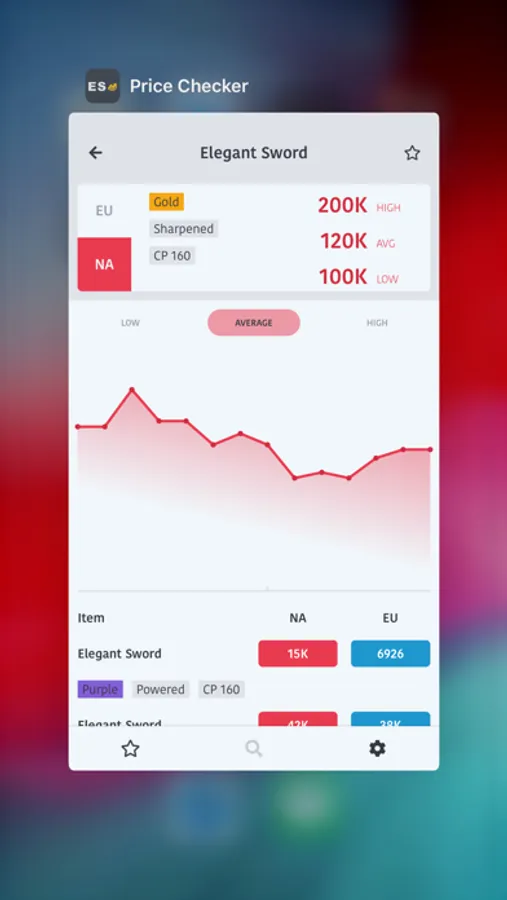 Know the current average price, lowest and highest price that items are selling for whenever you need.