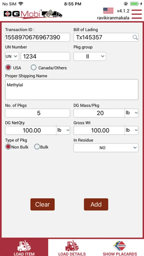 - At each pick-up and drop-off enter or remove the load, and DGMobi recalculates placarding.