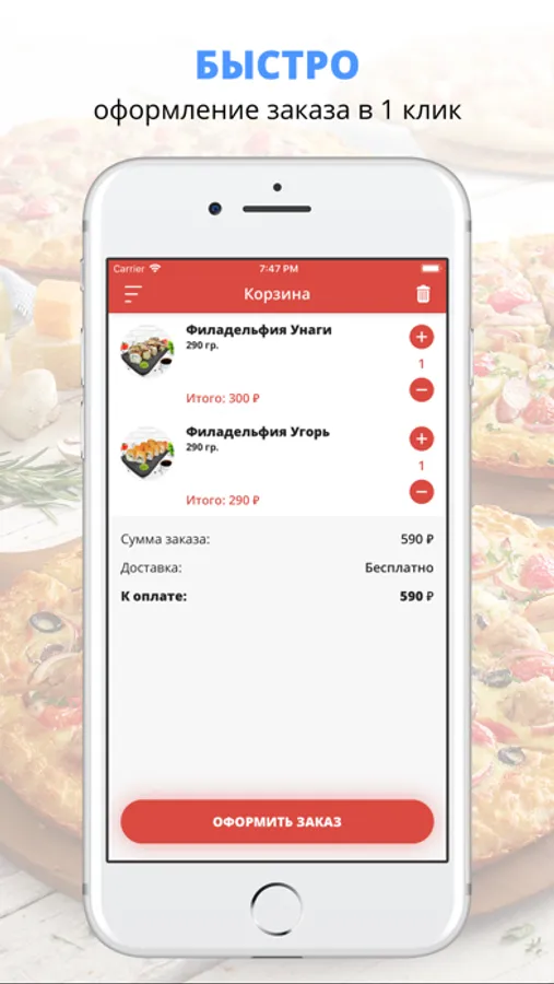 Принимаем заказы с 10:00 до 23:30. Минимальная сумма заказа по центру от 500 руб.