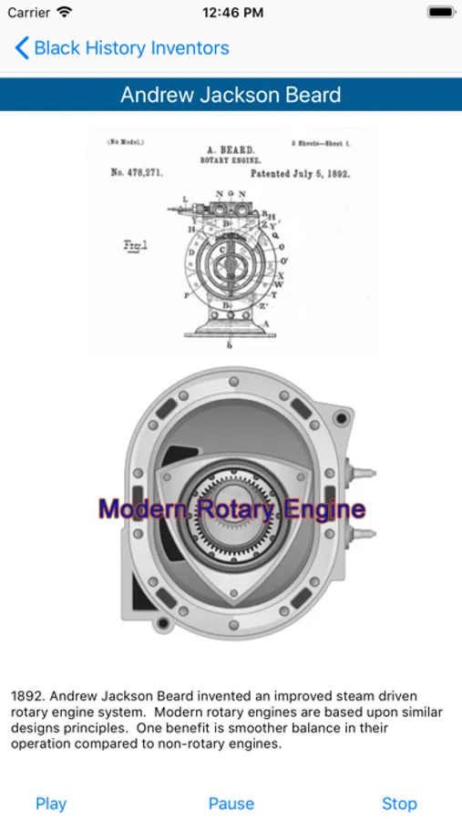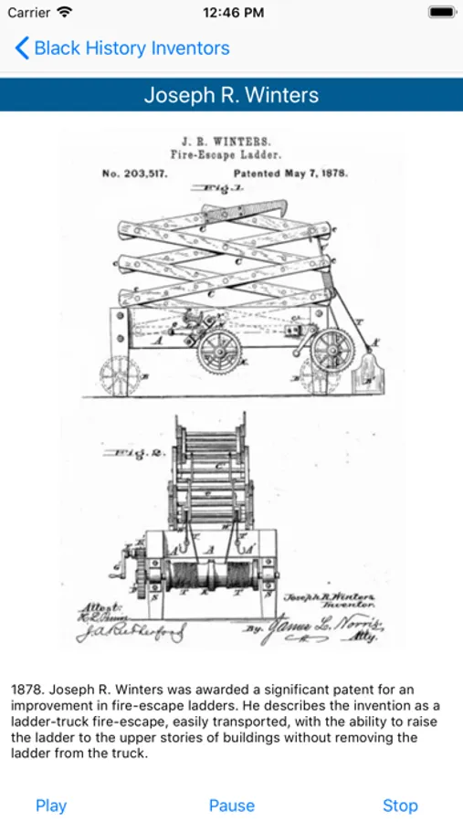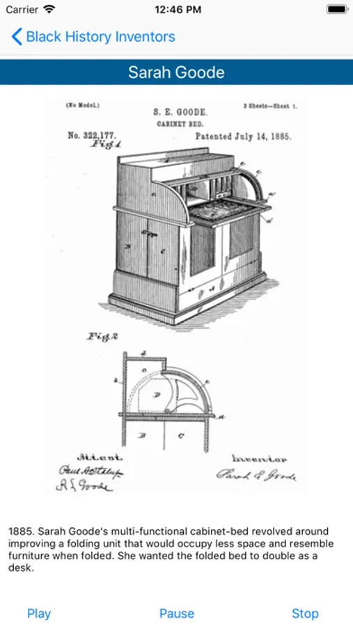 Black History Inventors app includes many amazing men and women. Some of these folks exhibited enough creative genius to receive U.S. patents. You can listen to historical inventor stories through your speaker or headphones spoken by a real person.