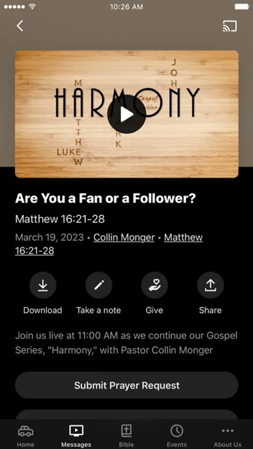 - Watch our live stream of our Sunday morning or Wednesday evening services.