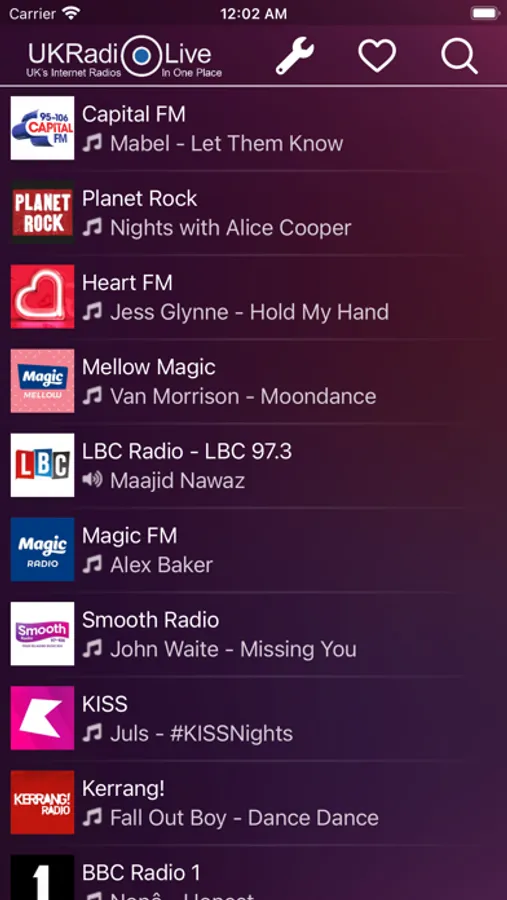 IOS application, developed for the UkRadioLive, UK's online radio listing site, which currently has similar functions as the website. There are more than 100 online radios of the UK are available to listen to. While listening to a radio, You can see the actually played song's title and cover, and You can search in the radio's playlist back for a month. Moreover, some radios have schedule, which shows the programmes one week ahead. Some radios support the webcam view, so they can be viewed, not just listened to. Look for this function on the radio's page header. You can set the actually listened radio as favourite, so later can be found easily. You can find below the partial list of the available radios in the application. If You don't find your favourite radio, You should try to click on the search icon, on the header of the application, type the radio's name, and launch the search for it. The search-function supports the voice-based search, in case of You can't type.