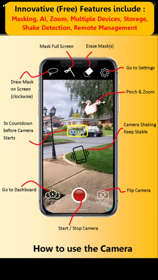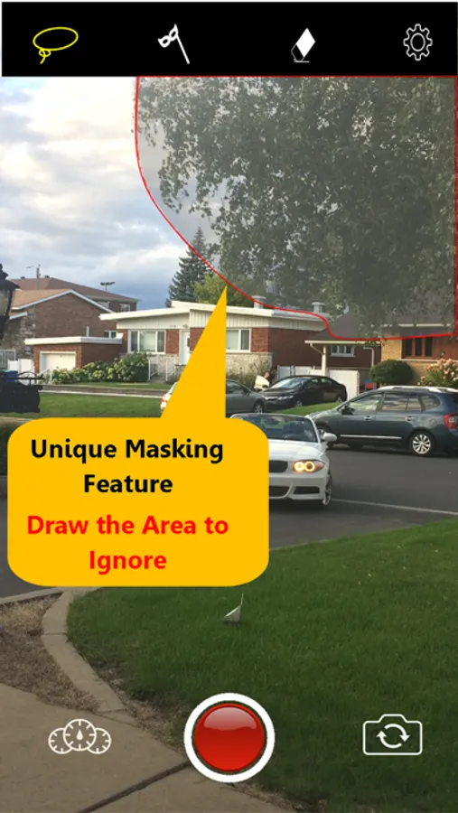 Sensitive Ai has developed a unique patent pending Masking feature which allows you to simply draw on the camera screen and block out motion from unnecessary objects such as moving leaves, traffic and busy backgrounds.