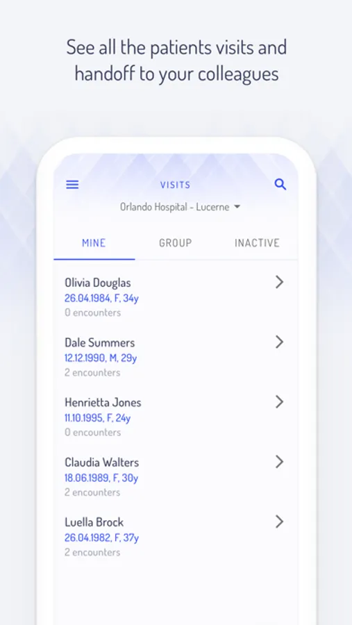 - Locations: add all the facilities you activate in and see the list of encounters for each one