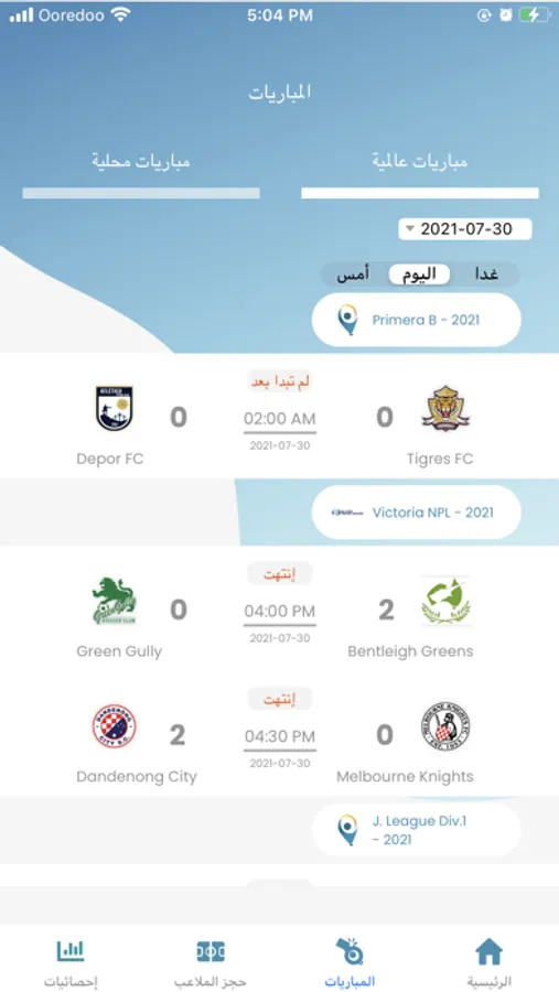 ٥- يمكنك متابعة جدول المباريات الدولية والمحلية .