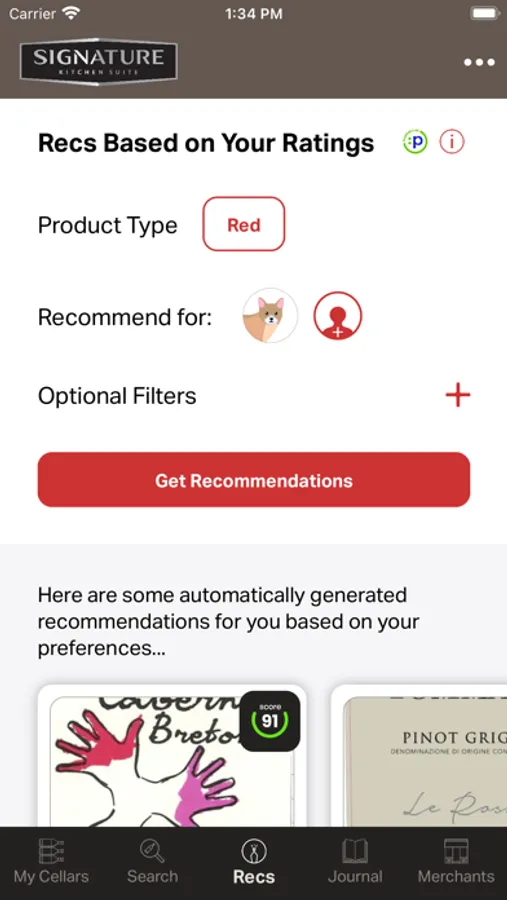 Signature Kitchen Suite’s Signature Sommelier App helps wine collectors manage their personal collections. The AI-driven app uses Preferabli's patented Preference Intelligence Engine, the first technology to learn consumer wine preferences and make recommendations, including food and wine pairings, for individuals and groups based on the wines, beers, and spirits stored in the user's cellar.