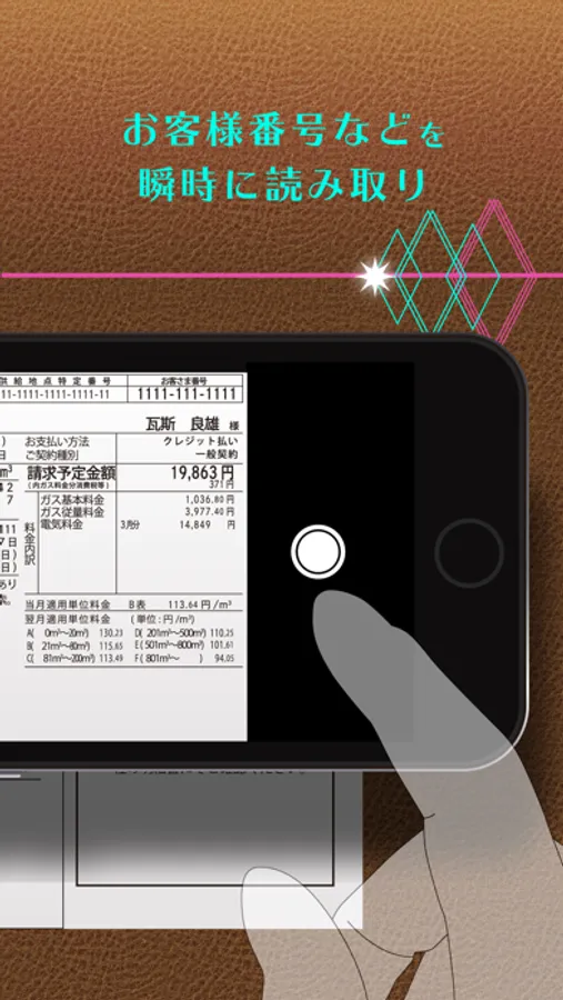 検針票に記載されているお客様番号と供給地点特定番号を自動で入力します。