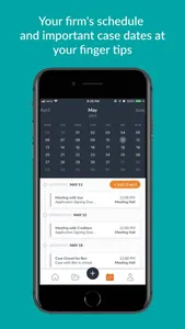 - Your firm's schedule is always in your pocket in an upcoming events list and calendar view so you never miss a deadline, meeting, or court date.