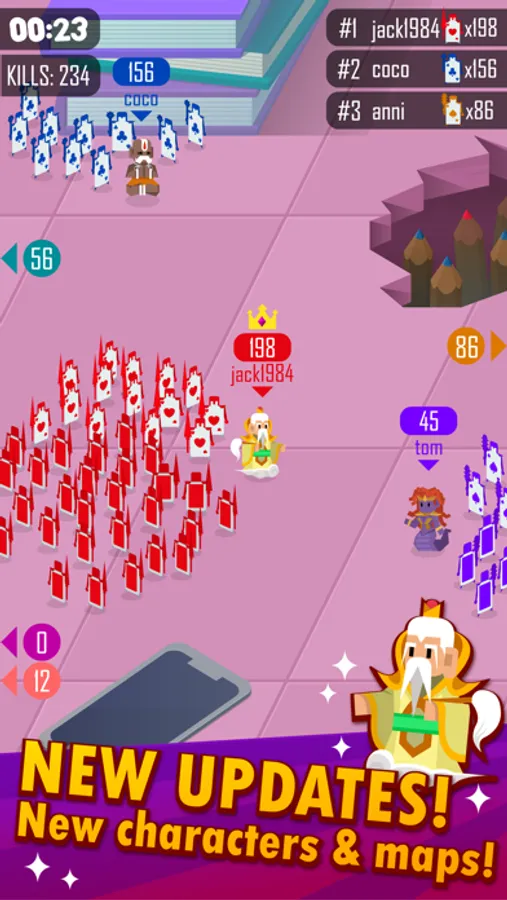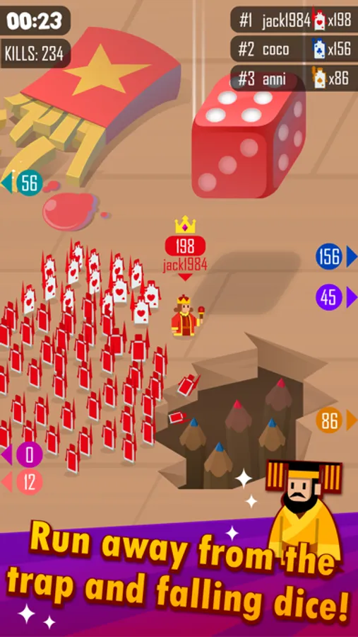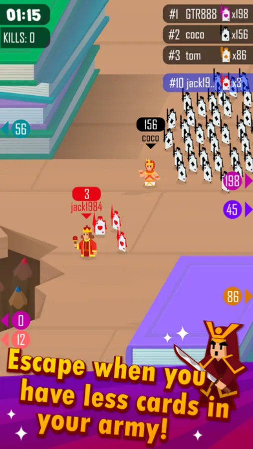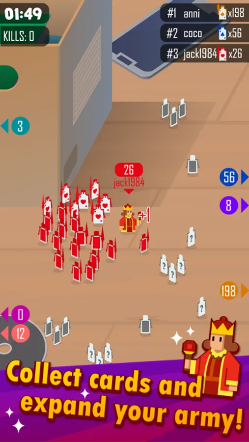 *SUPER EASY TO PLAY - control your King to collect the poker cards and expand army! Crush other Kings who have less cards!
