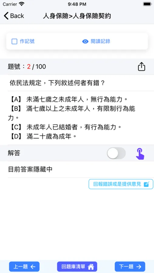 2.作記號功能,將不熟悉的題目劃重點,待下次再來看。