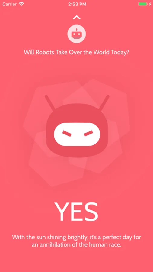 So ask yourself the question, “will robots take over today?” Then, open the app and get the answer you’re seeking. Oh, yeah, you can also prepare for hikes, long commutes on bicycles, and trips to the beach with our reliable weather report. Think of it as your all-inclusive weather/robot-takeover report.