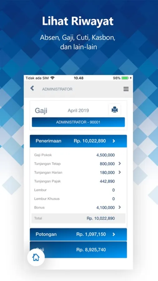 Melihat riwayat absen, cuti, kasbon, lembur dan lain sebagainya kapan saja dimana saja