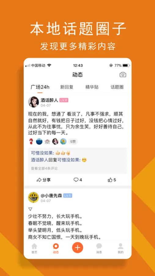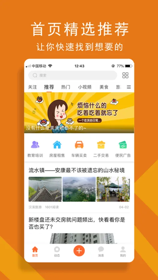 安康100,本地人生活必备的手机APP,提供同城线上线下多人社交和服务以及本地资讯。在这里,你可以分享你的见闻,纪录你的日常,参与网友发布的美食、旅游、情感、婚姻、育儿、时尚、购物、健身、家居、宠物等话题讨论,结识更多兴趣相投的同城好友,找到附近的二手交易、求职招聘、租房买房、相亲交友、家政保姆等信息。