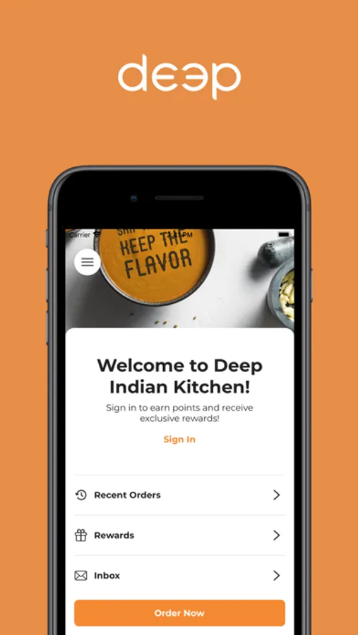 The Deep Indian Kitchen app allows you to order ahead for delivery or pick up. Use the app to get your food ASAP or schedule ahead -- and earn exclusive rewards!
